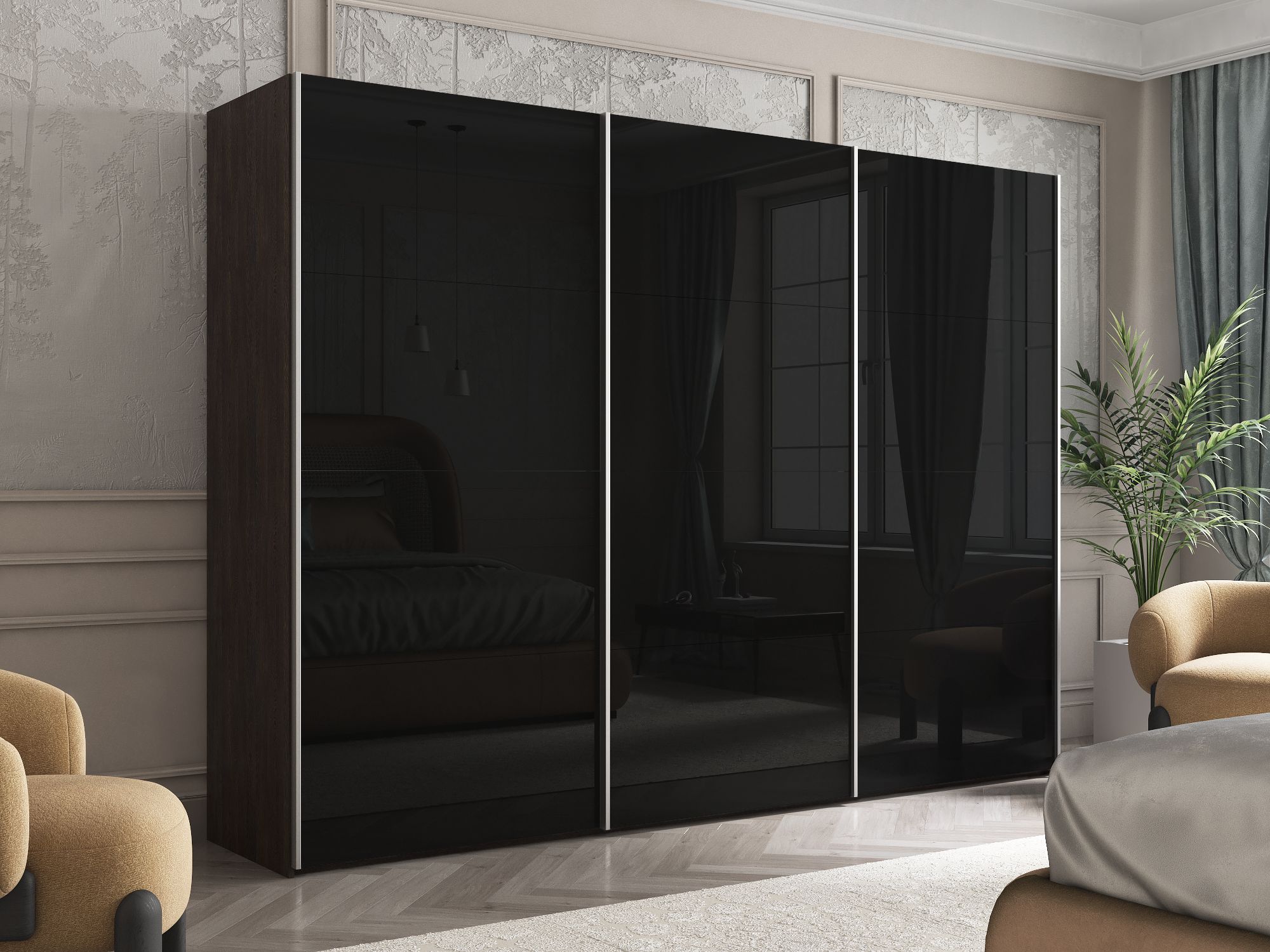 Отзывы о Столплит Шкаф Эста трио Стекло черное 2400 х 2400 х 660 Венге мали