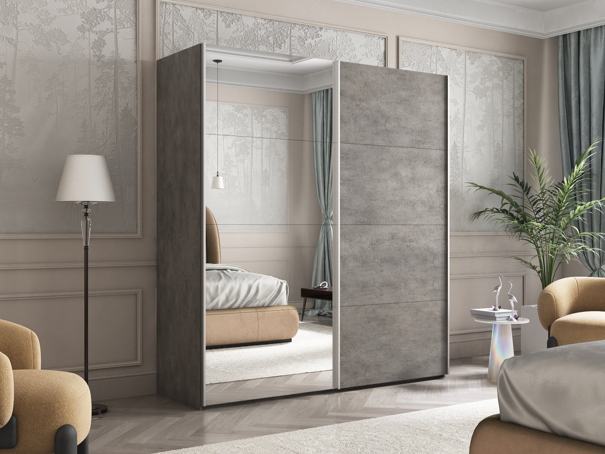 Отзывы о Столплит Шкаф-купе Эста ДСП+Зеркало 200х66х240 Бетон серый
