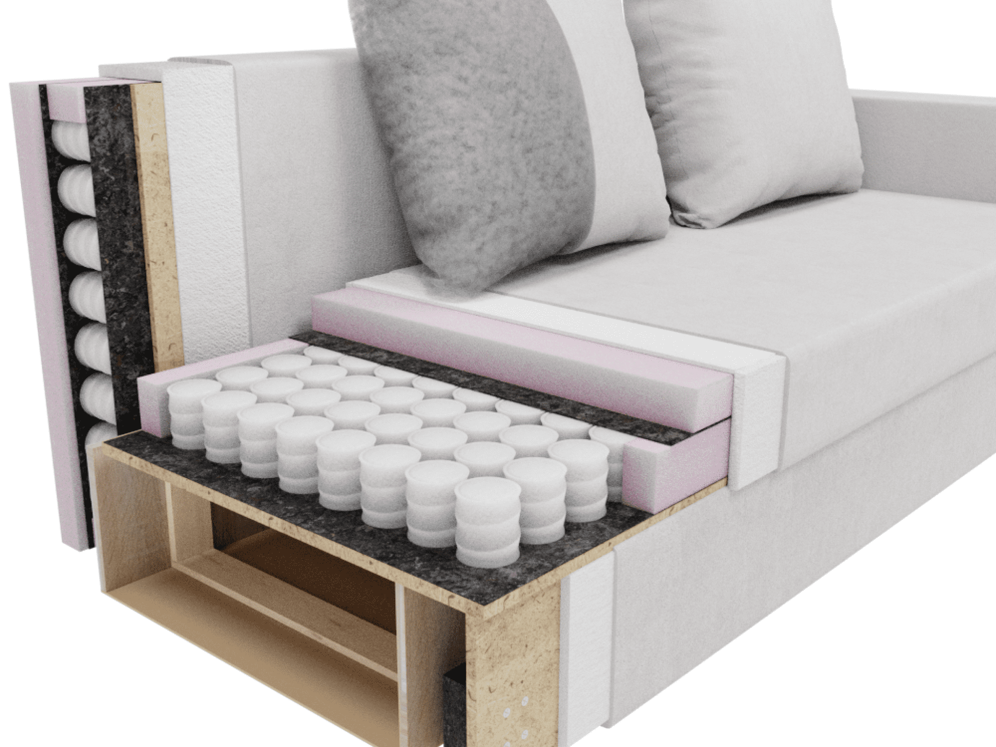 Особенности: с подлокотниками, раскладная конструкция, съемные подушки.