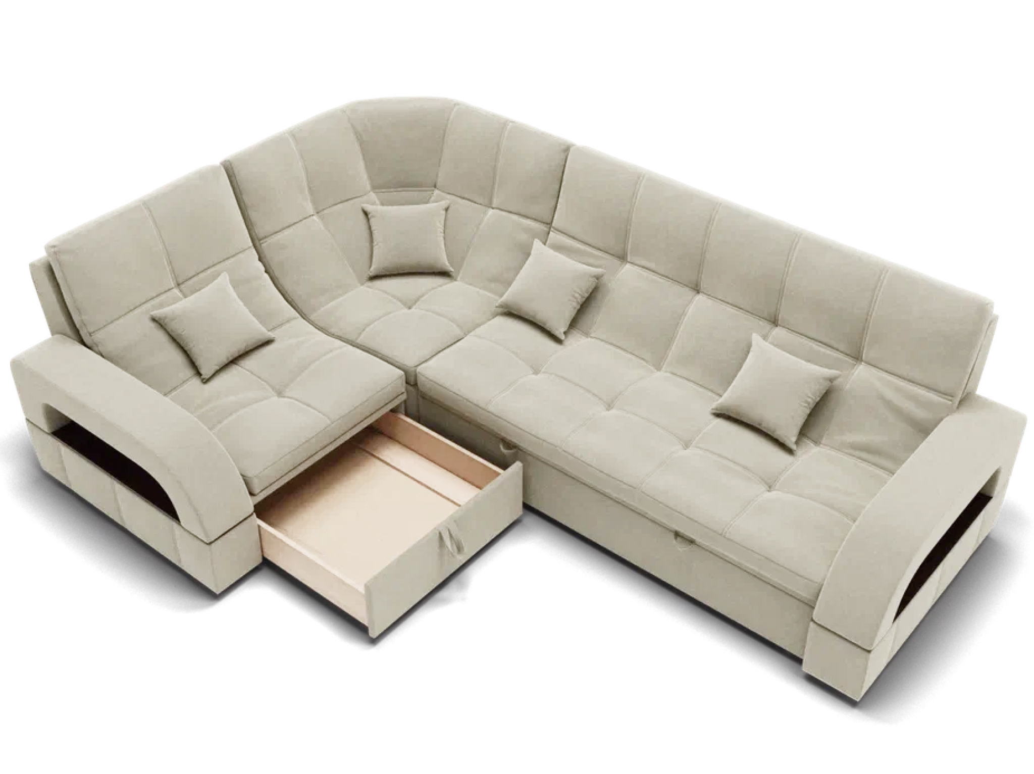 Модульный диван "Майами-3" от YORCOM - это отличный выбор для тех, кто ищет комфортабельный и стильный диван для своего дома. Этот диван выполнен из велюра белого цвета, который придает ему элегантный и современный вид.