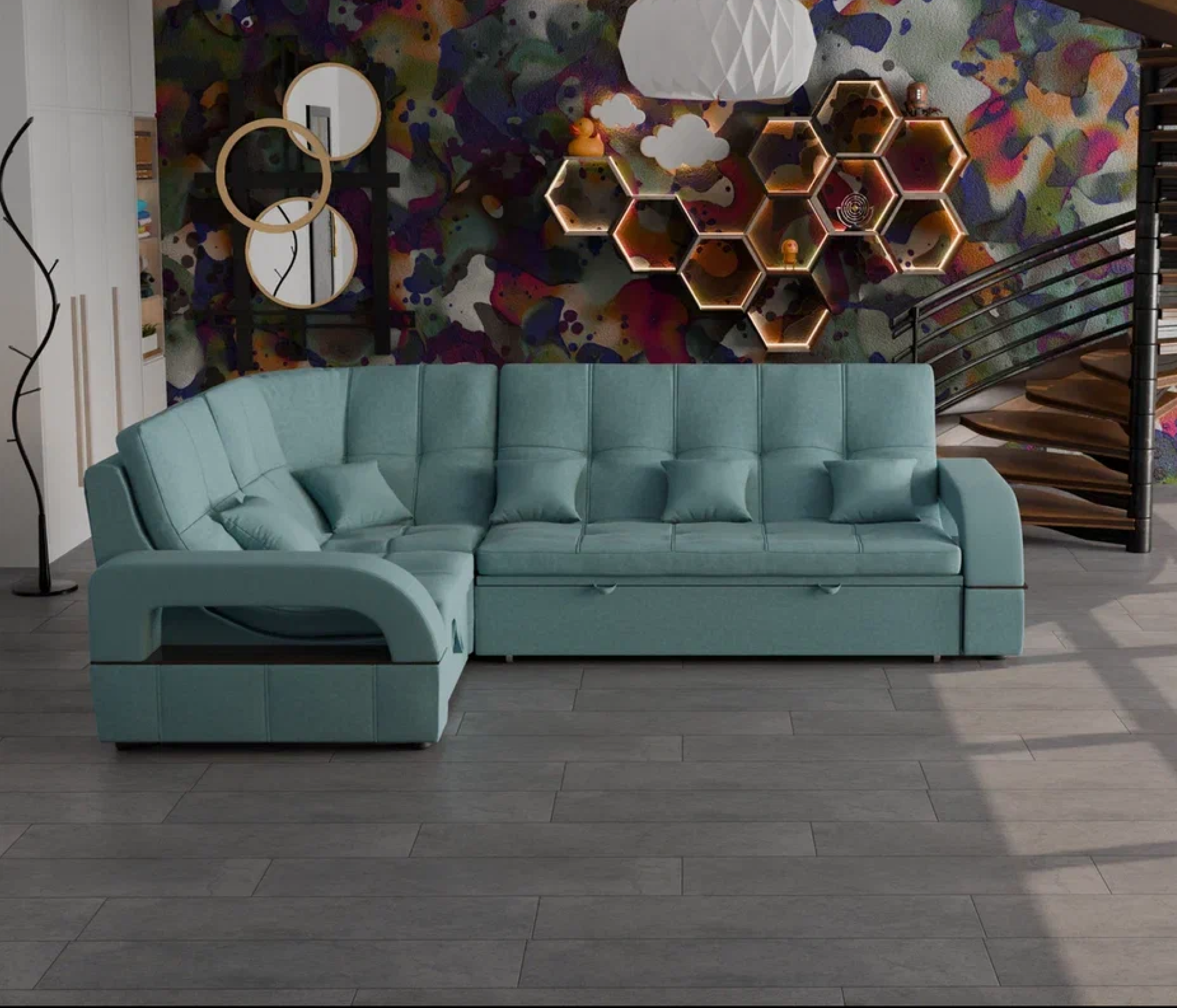 Отзывы о Столплит Модульный диван Майами-3,микровелюр,антивандальная и водостойкая ткань,венеция Голубой
