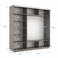 Размеры: В 2400 Г 600 Ш 2100.