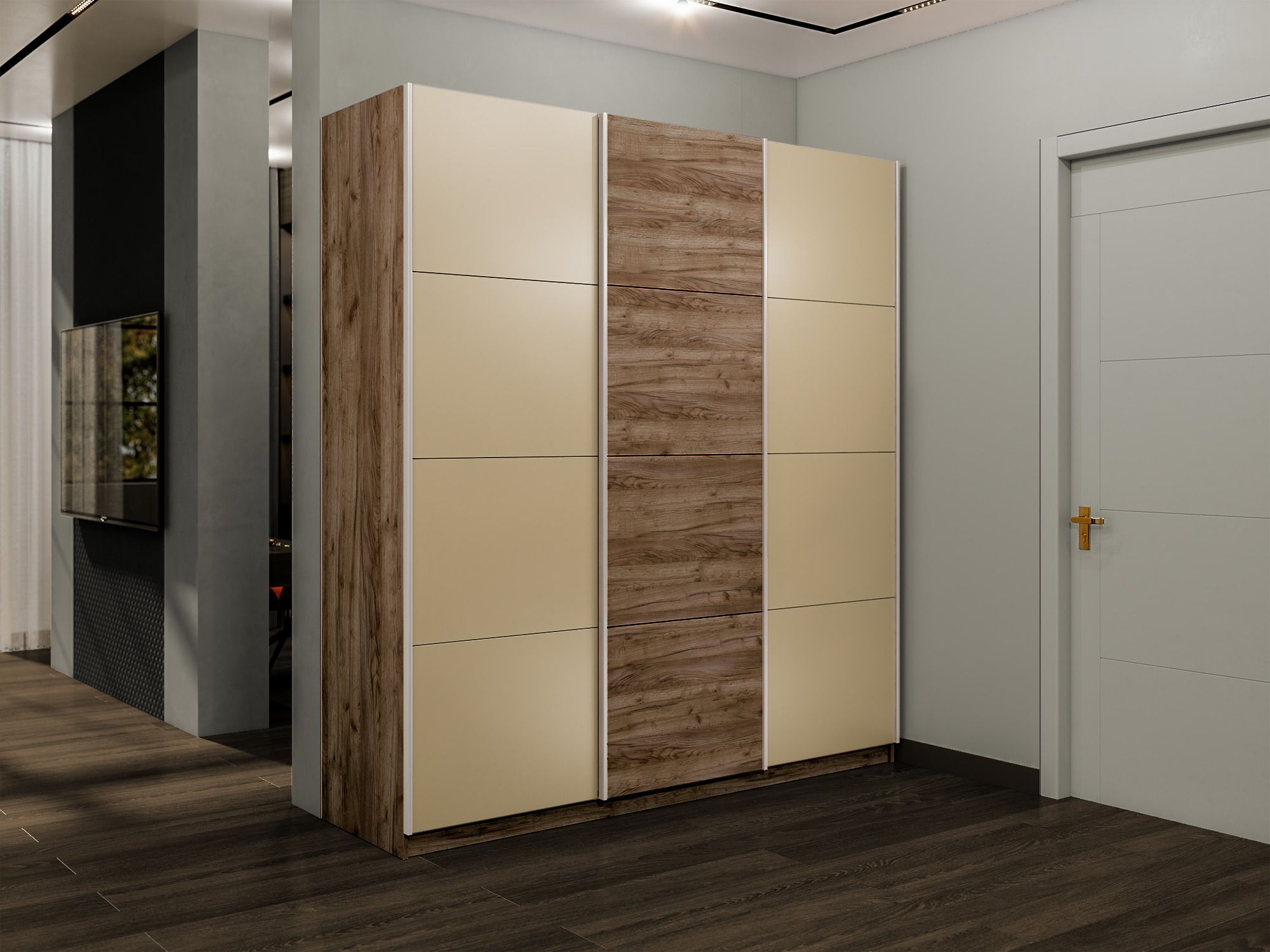 Шкаф-купе Эста 3-х дверный ДСП/Стекла фисташка/Доводчик 270х66х240 Код I0000408734