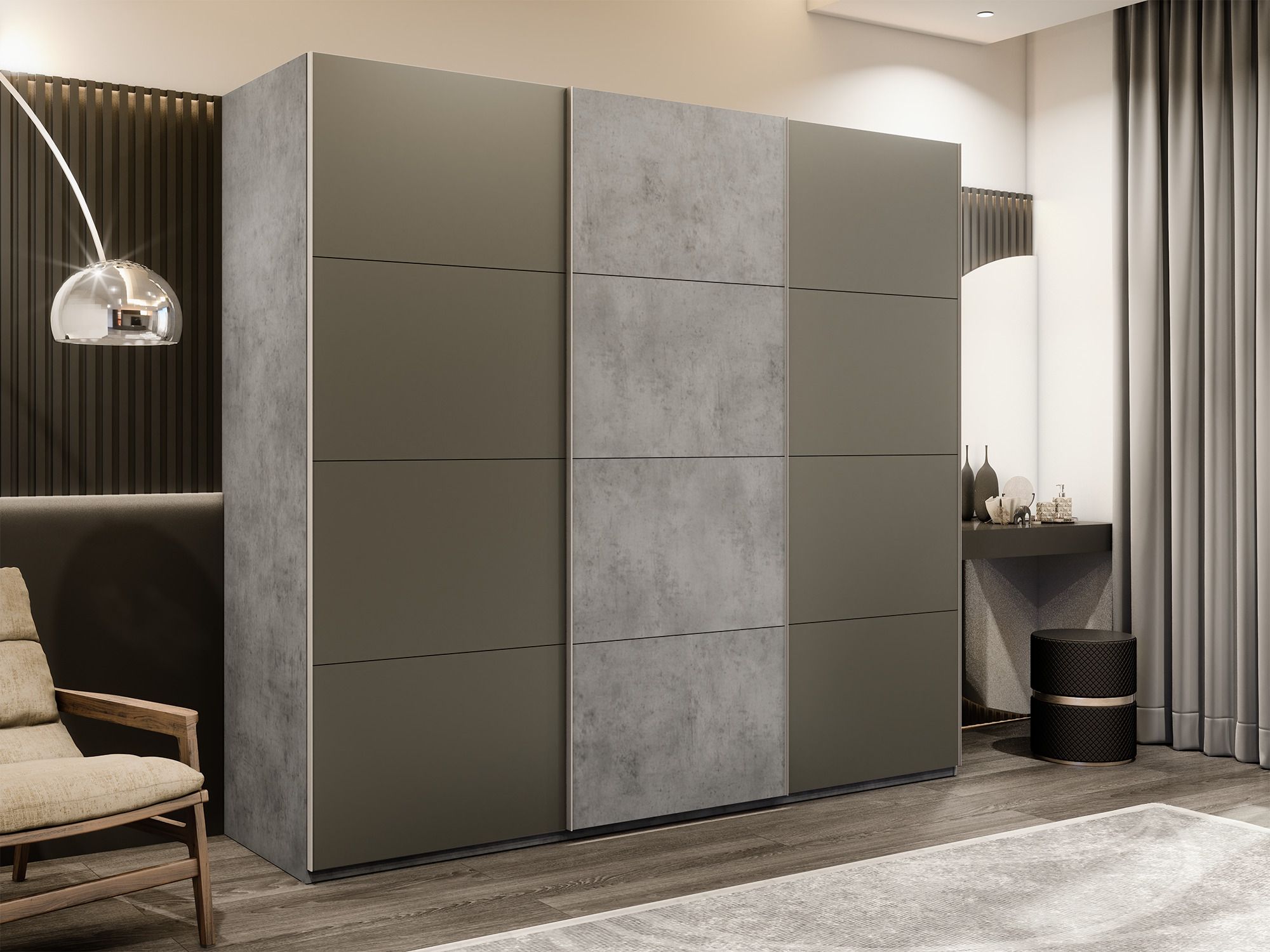 Шкаф-купе Эста 3-х дверный ДСП/Стекла хаки/Доводчик 240х66х240 (Бетон) Код I0000409008