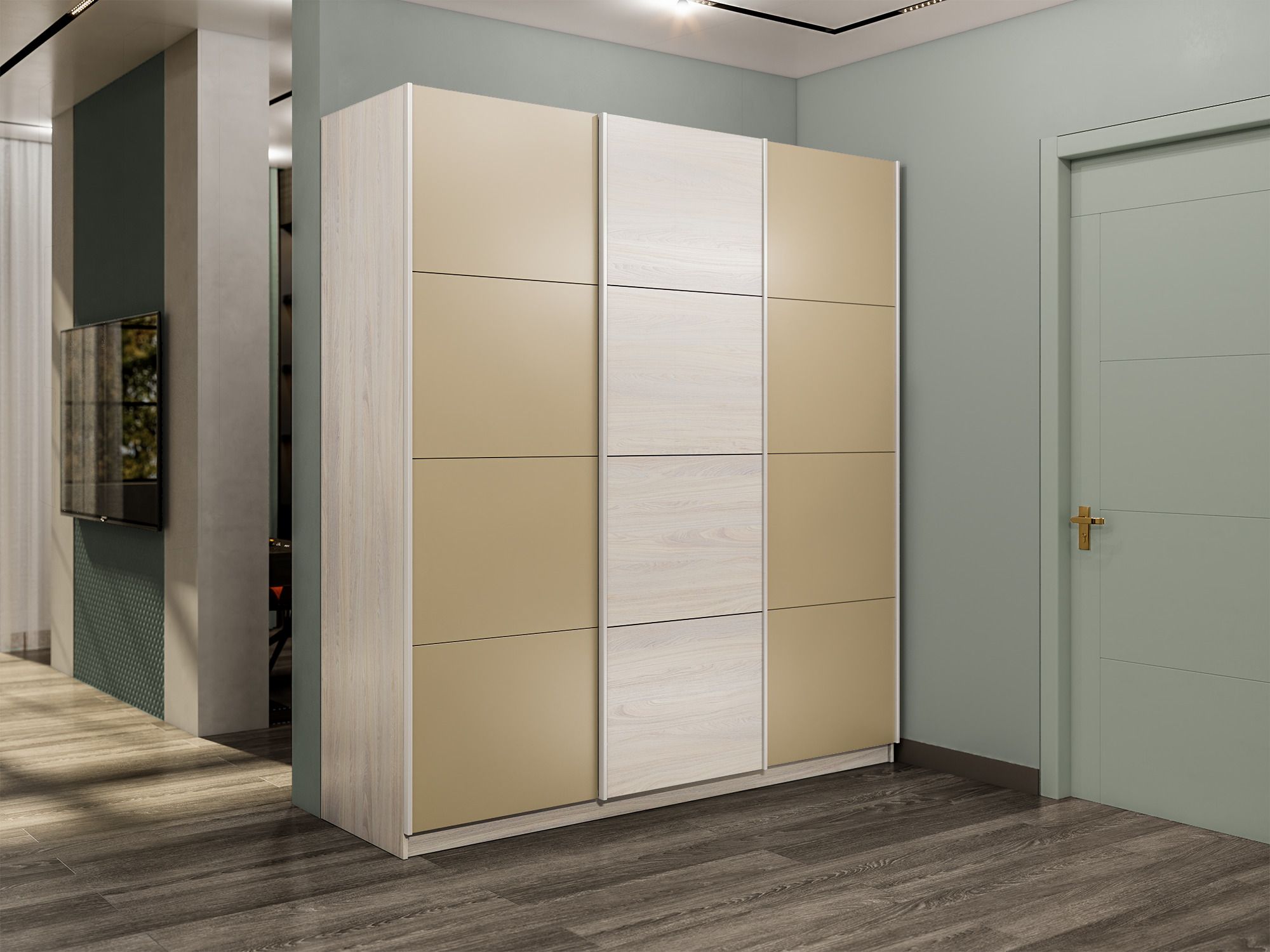 Отзывы о Столплит Шкаф-купе Прайм 3-х дверный Стекла фисташка/ДСП/Доводчики 210х57х230 Ясень Анкор светлый