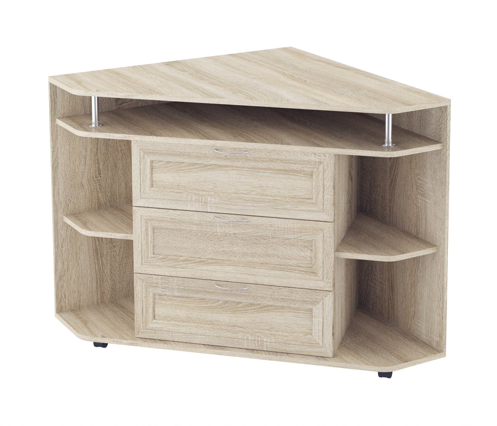 Комод 20 имеет 3 выдвижных ящика в центре, по бокам четыре угловые ниши, вверху полка. Верхняя платформа идеально рассчитана для установки телевизора, с возможностью установки дополнительной аппаратуры в нише под верхней платформой.Корпус комода выполнен из Ламинированной ДСП высокого качества с насыщенным цветом. Фасады выполнены из материала МДФ.Производитель оставляет за собой право менять фурнитуру.