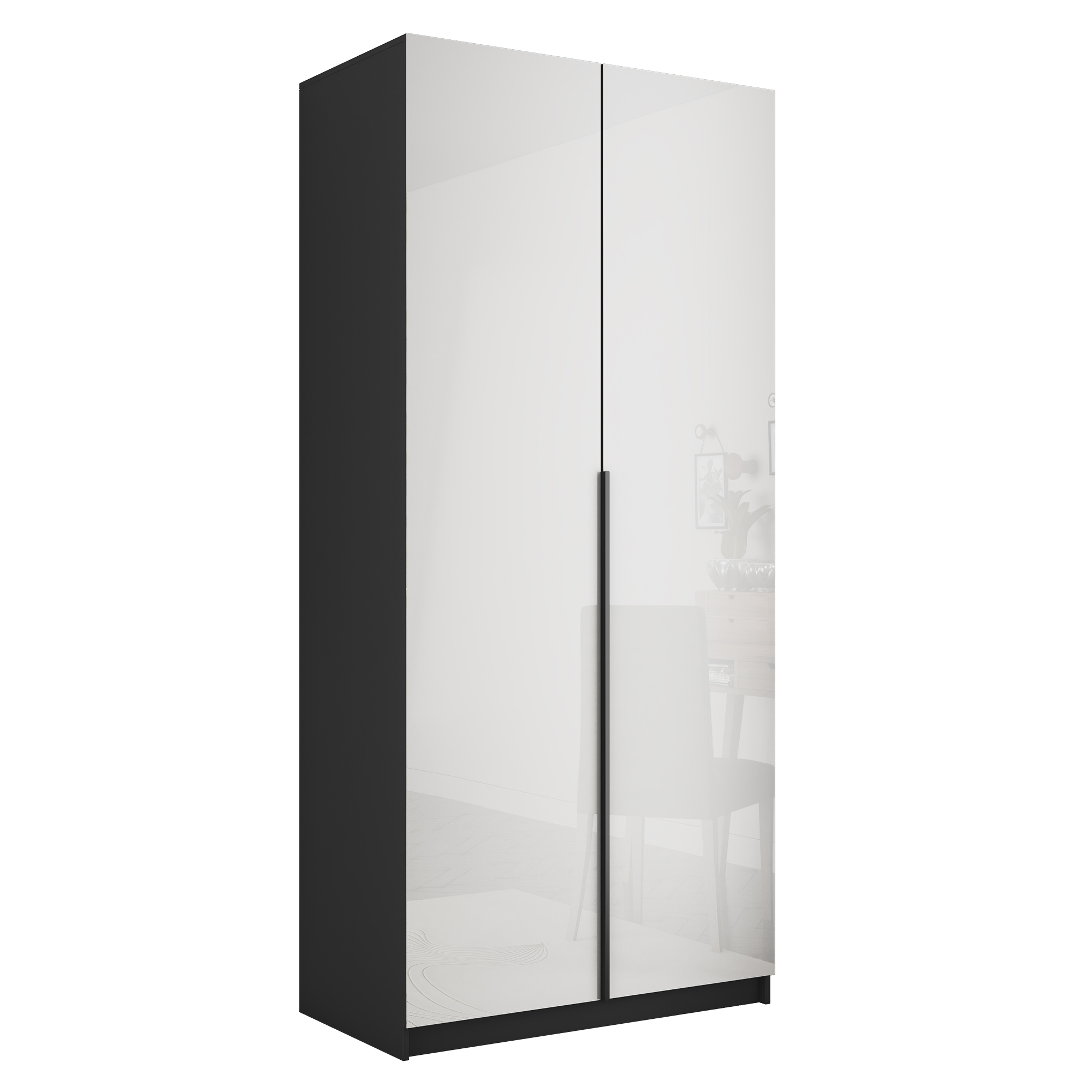 Шкаф распашной Е1 Локер 101x52.5x220 см, с белым стеклом и полками (Серый диамант)