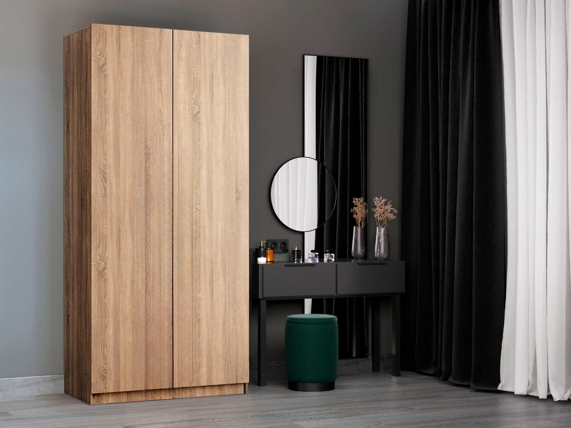 Шкаф складной Е1 Локер ("Гармошка" с системой Push to Move/Правый)101х52,5х220 см, с модулем (Дуб сонома)