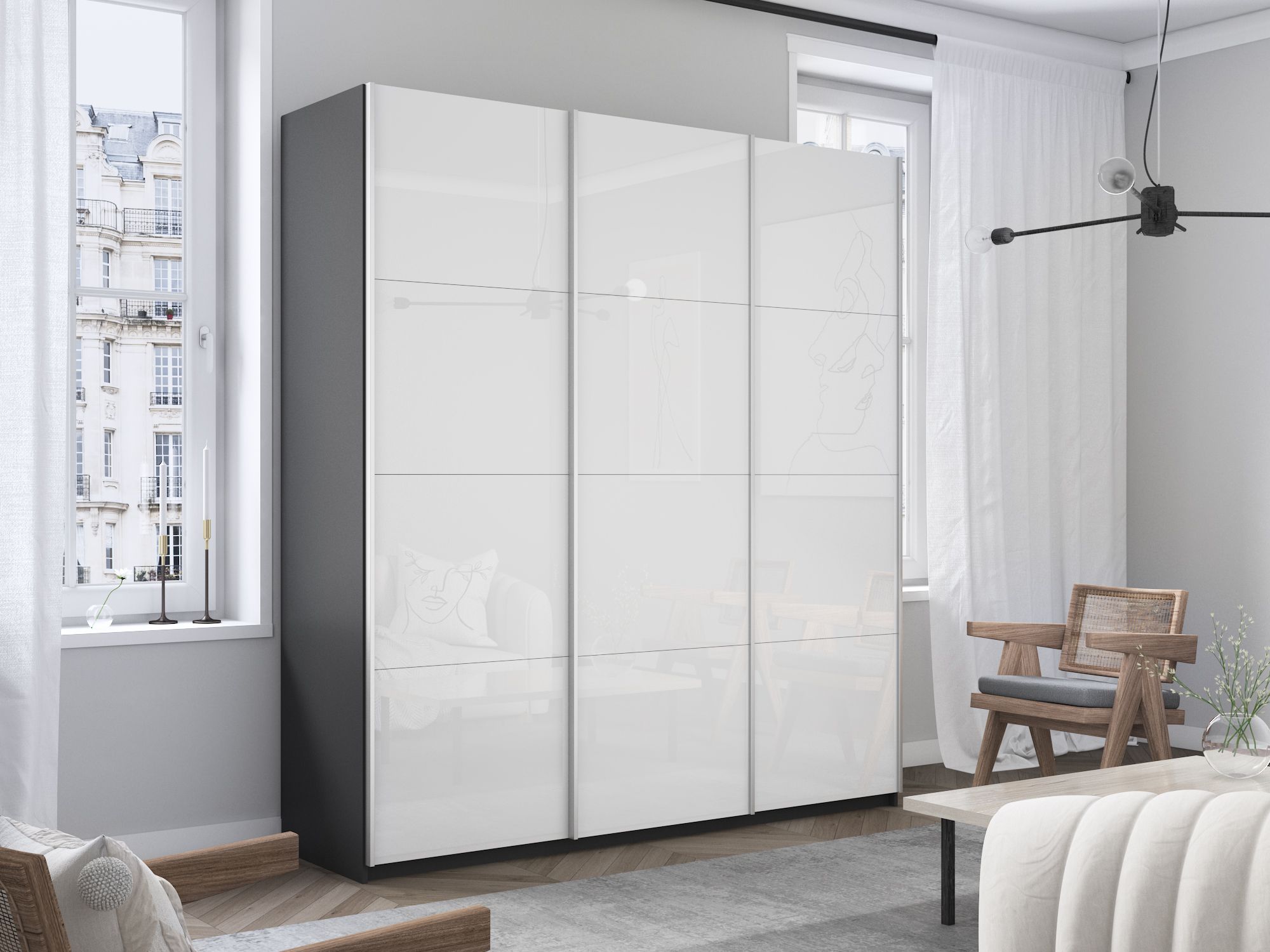 Отзывы о Столплит Шкаф-купе Прайм 3-х дверный Стекла белые/Доводчики 210х57х230 Серый диамант