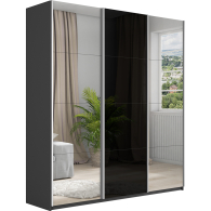 Отзывы о Столплит Шкаф-купе Прайм 3-х дверный Зеркала/Стекло черное/Доводчики 180х57х230 Серый диамант