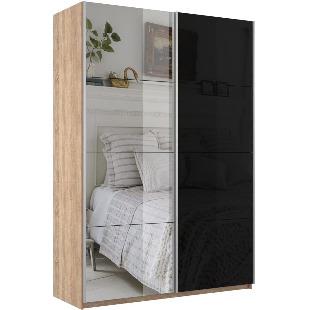 Отзывы о Столплит Шкаф-купе Прайм 2х дверный Зеркало/Стекло черное 120х57х230 Дуб Сонома