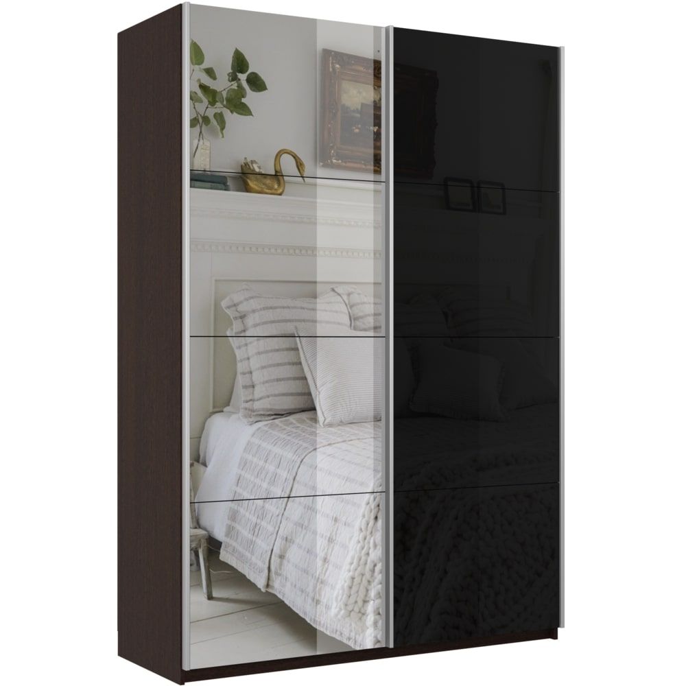 Отзывы о Столплит Шкаф-купе Прайм 2х дверный Зеркало/Стекло черное 140х57х230 Венге