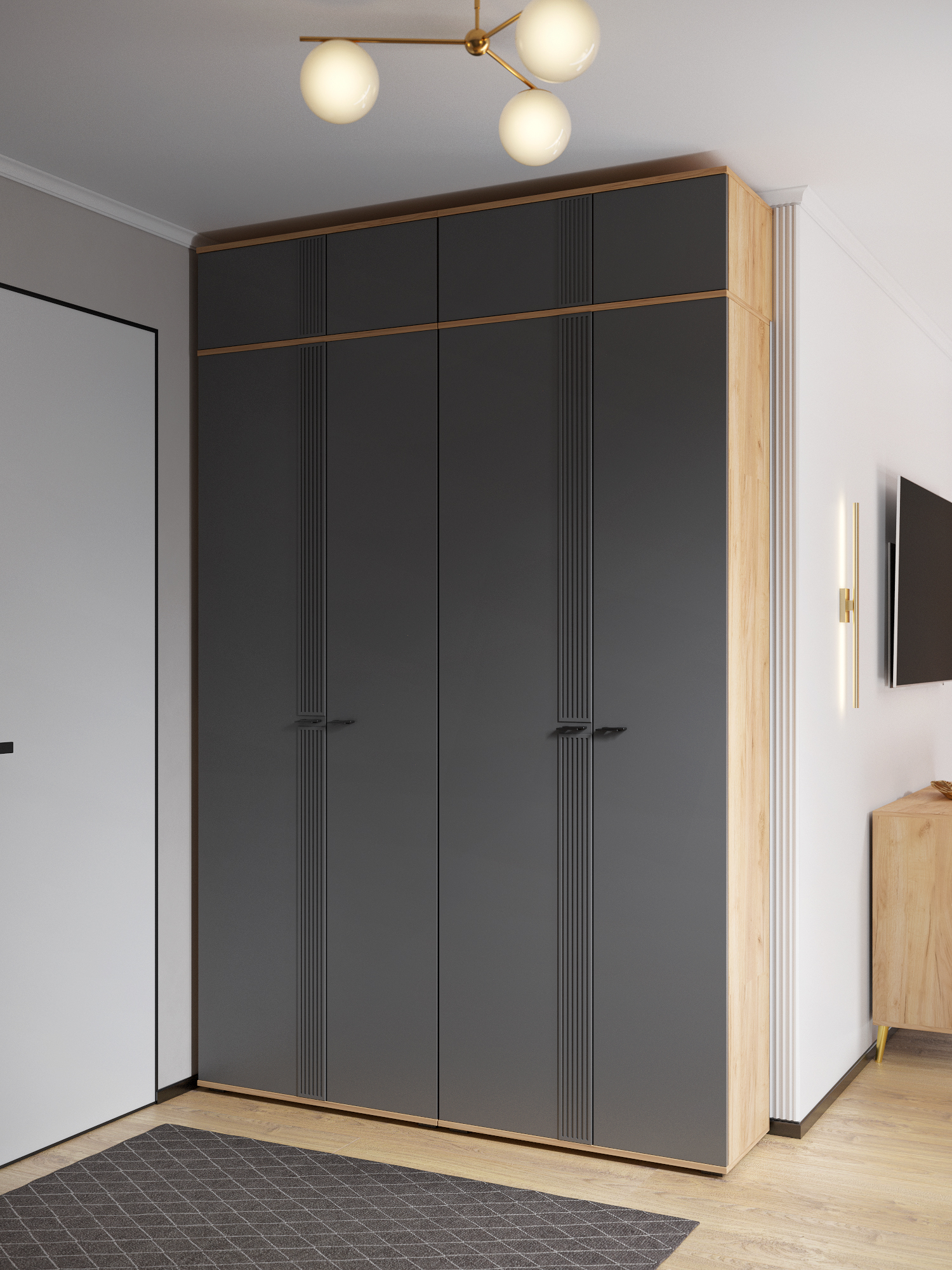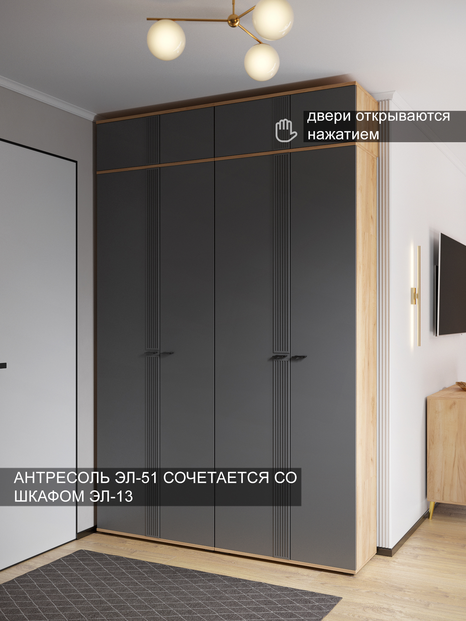 Антресоль Эмилия ЭЛ-51: стильное и функциональное решение для хранения. Антресоль Эмилия ЭЛ-51 — это идеальное дополнение к шкафу ЭЛ-13К, которое поможет организовать пространство и добавить интерьеру современный акцент. Основные характеристики: Размеры: 802х300х402 мм (ширина/высота/глубина). Цвета: сочетание натуральных оттенков и современного дизайна. Материалы: фасад из МДФ 16 мм, корпус из ЛДСП 16 мм. Преимущества антресоли Эмилия ЭЛ-51: Функциональность: навесная система хранения, которая отлично дополняет шкаф ЭЛ-13К. Удобство использования: дверцы с открыванием нажатием для легкого доступа к вещам. Современный дизайн: сочетание цветов «дуб крафт золотой» и «графит» впишется в любой интерьер. Фурнитура: петли с доводчиками. Доставка и сборка: мебель поставляется в разобранном виде, в надежной упаковке, с подробной инструкцией по сборке. Сборка осуществляется самостоятельно или с привлечением специалистов.