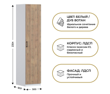 Отзывы о Столплит Шкаф однодверный Макс 500 мм, вариант №1 (Дуб Вотан ЛДСП) Дуб вотан/Белый