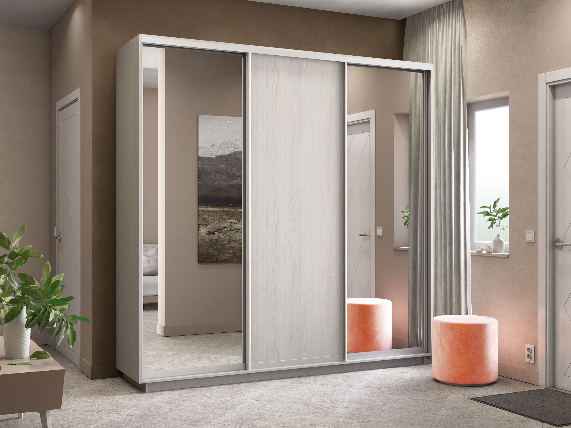 Отзывы о Столплит Шкаф-купе Экспресс Медиум (2 зеркала) трио 2200 x 2400 x 600 Ясень Анкор светлый