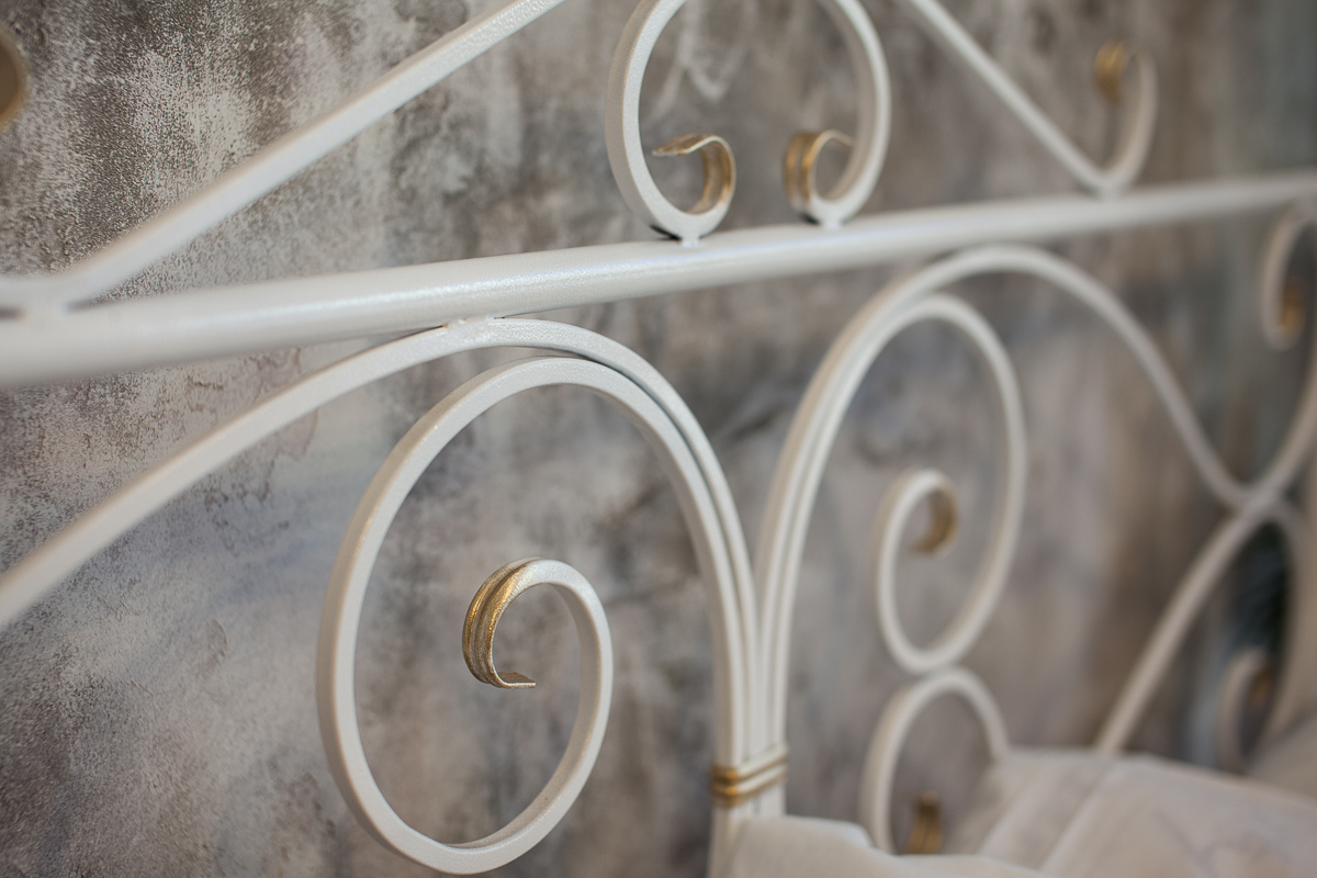Воздушность и изысканность кованой кровати Валенсия прекрасно сочетаются с ее долговечность и надежностью, обеспеченными качественными и прочными материалами изготовления.