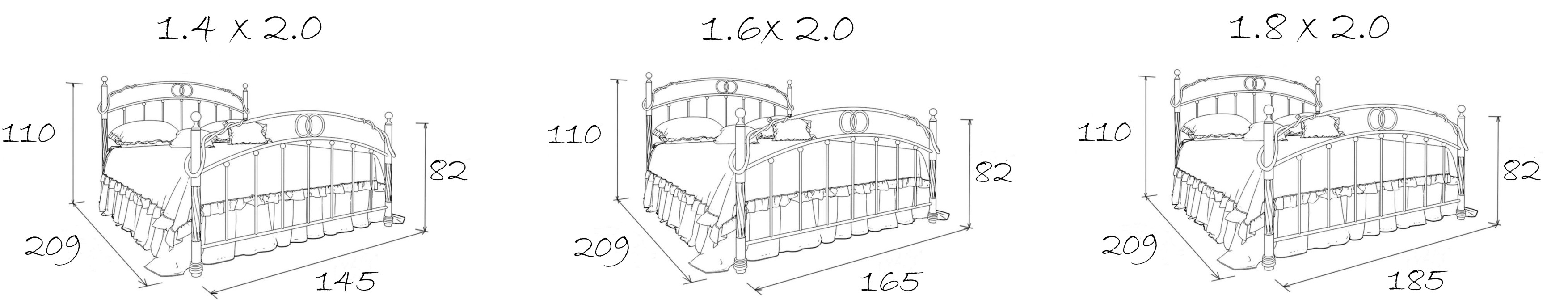Размеры спального места (ДхШ) 2000х1600, высота изножья 820, мммаксимальная нагрузка на 1 спальное место - 150 кг.