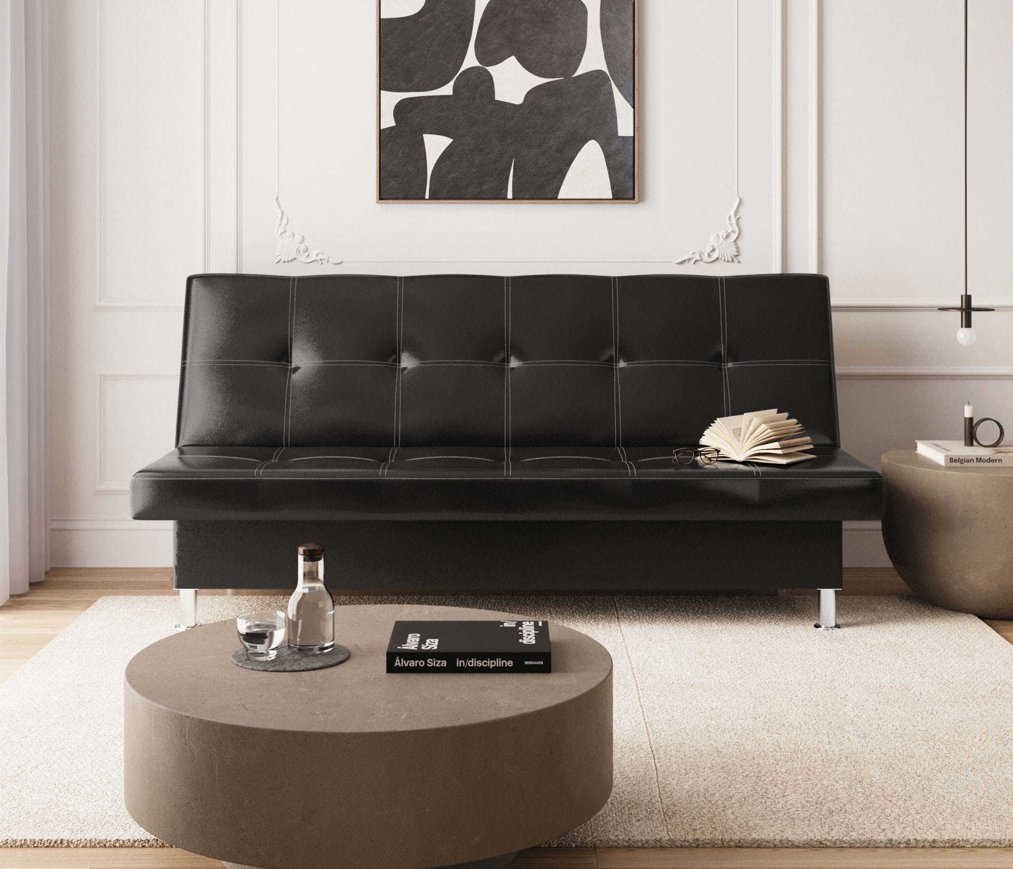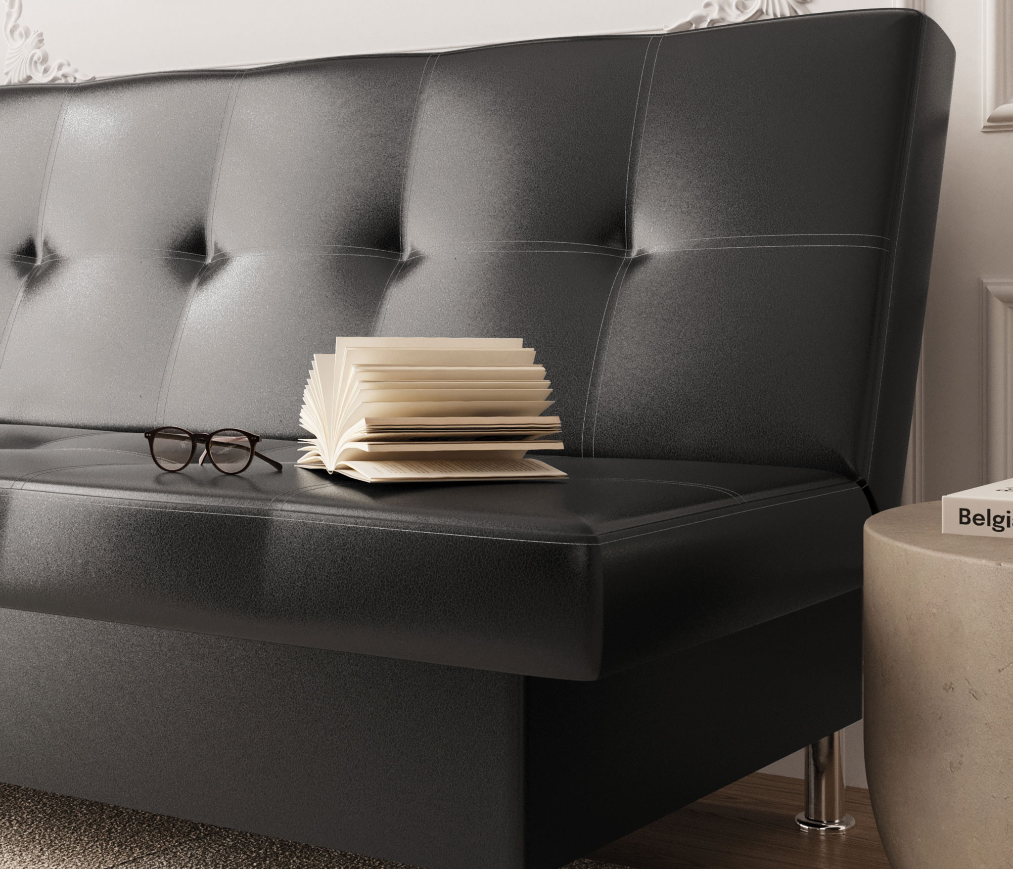 Диван-кровать Бомонд, экокожа (Real black (Черный))
