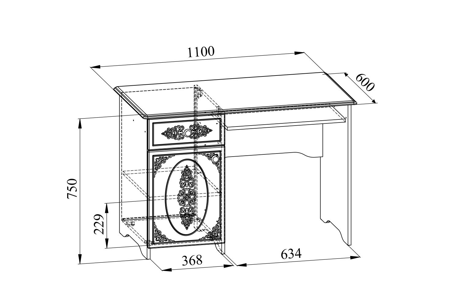 Стол собирается зеркально, т.е. один и тот же стол можно собрать с ящиком и тумбой справа или слева.