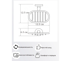 Мыльница решетчатая, подвесная. Гигиеничность, экономия места и удобство использования. Изделие монтируется к стене при помощи надежного крепежа. Не поддается коррозии, не деформируется и не отрывается от поверхности.