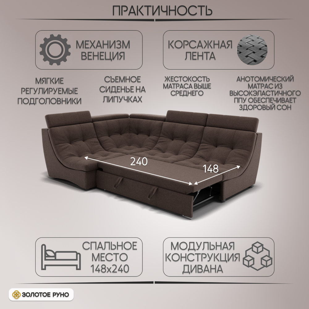 Отзывы о Столплит Угловой Диван Монако-3 ППУ, велюр Коричневый