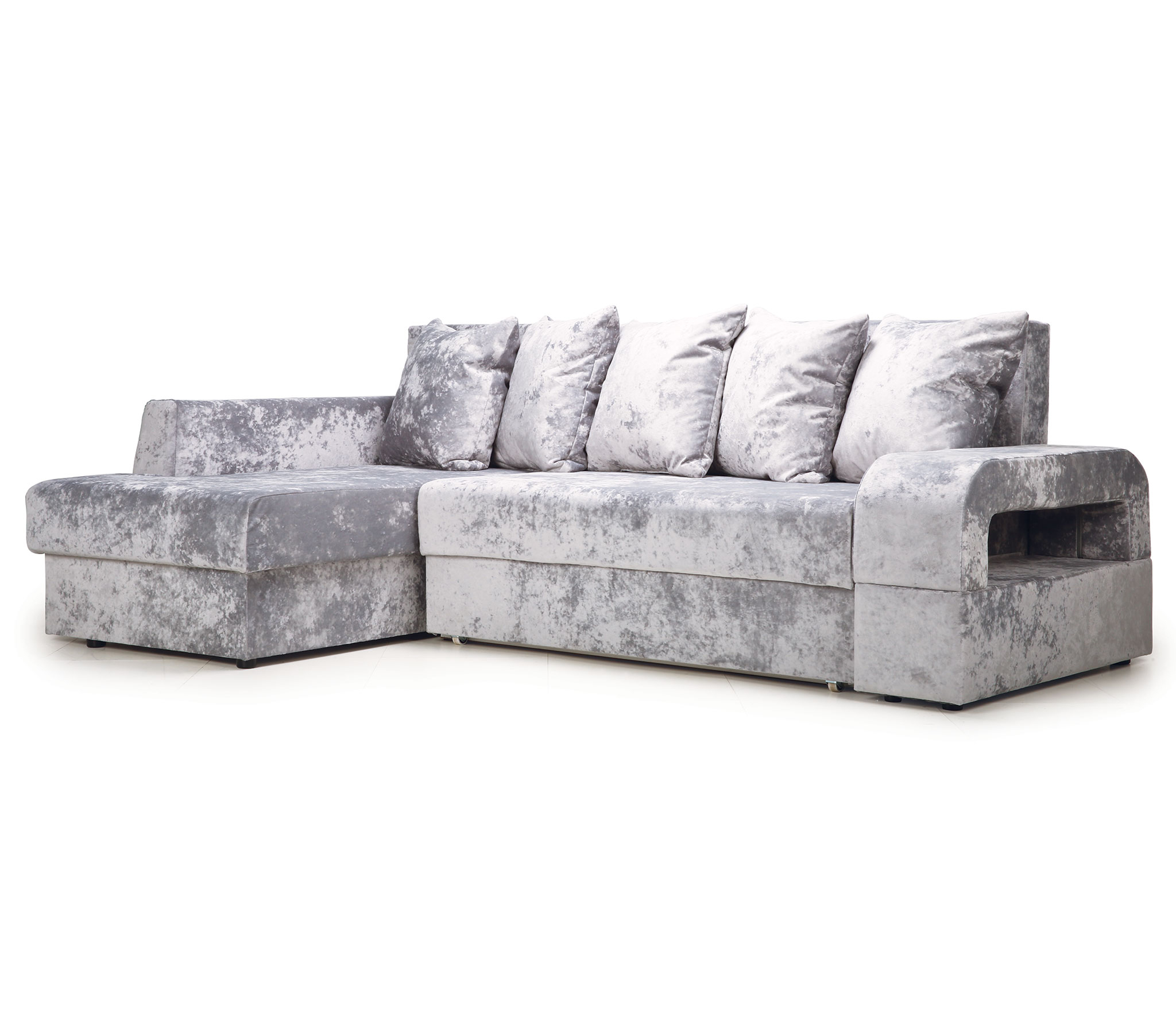 Угловой диван Марго 1 (левый), велюр (Светло-серый)