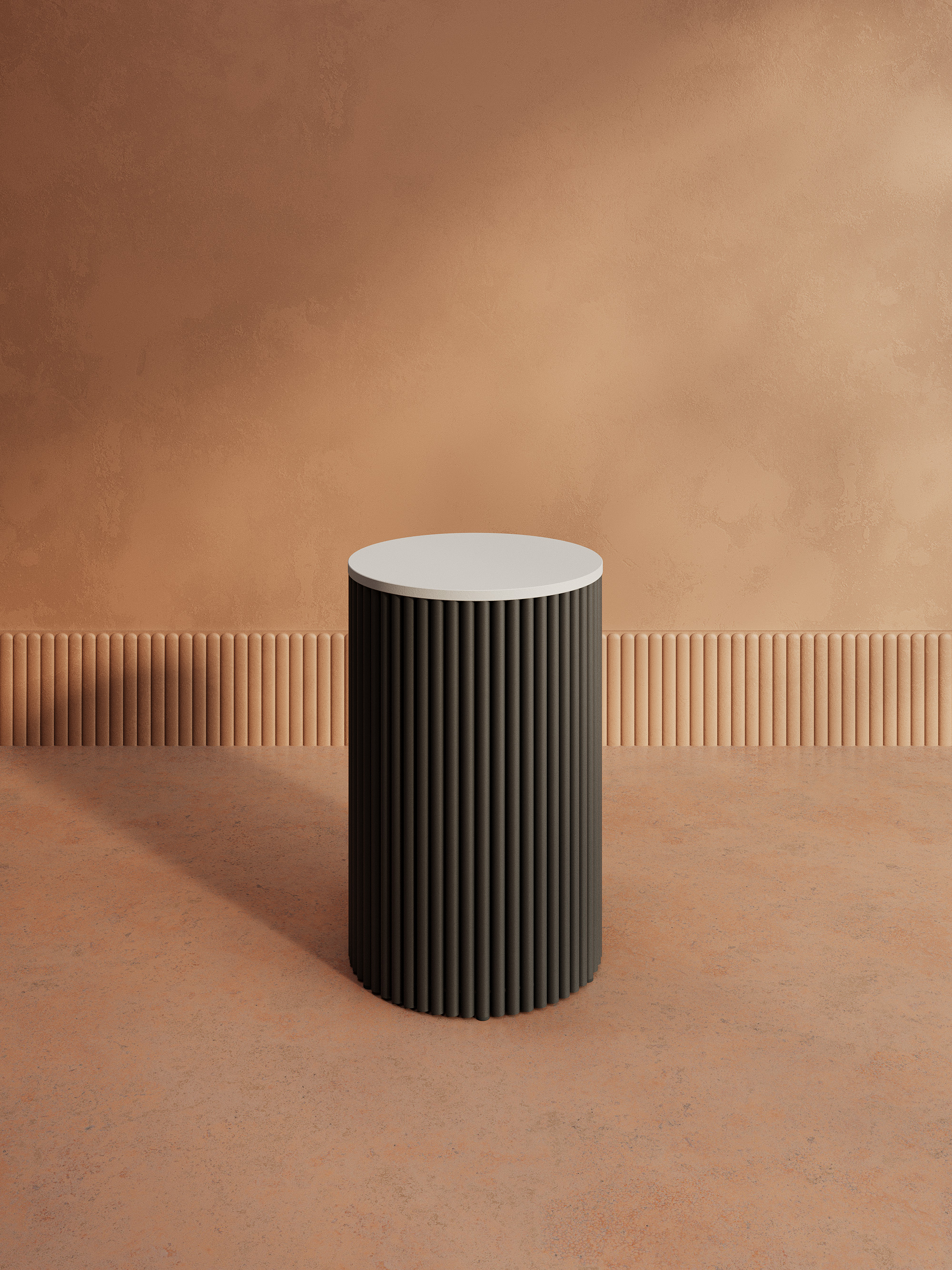 Дизайнерский круглый стол с металлическим трубчатым подстольем. Диаметр подстолья D400 мм. Столешница ЛДСП 16мм, диаметр D400 мм. Стандартный вариант - матовая порошковая окраска в чёрных или белых цветах. На заказ возможно изготовление столешницы ЛДСП в индивидуальном цвете и размере под заказ.