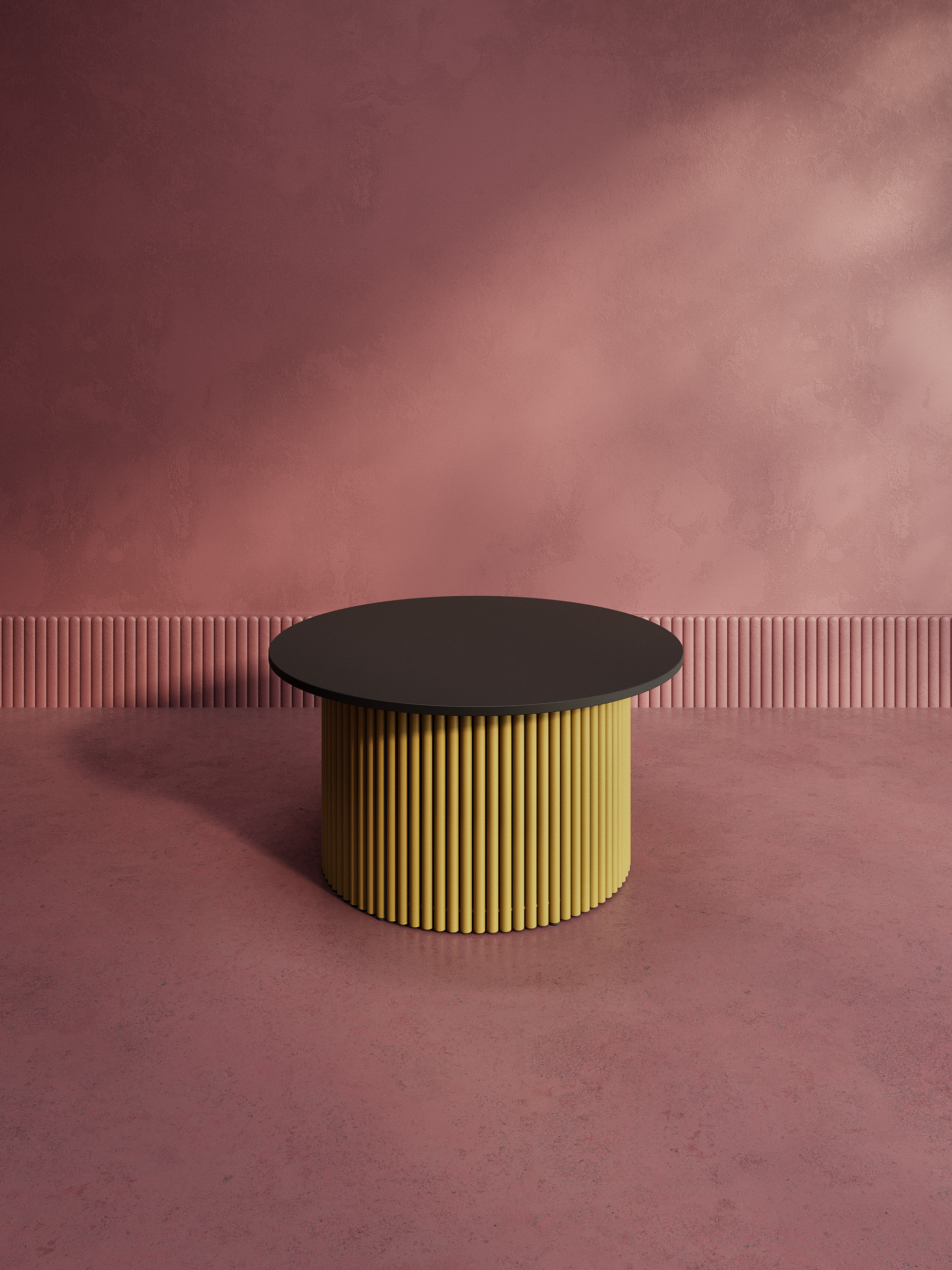 Дизайнерский круглый стол с металлическим трубчатым подстольем. Диаметр подстолья D600 мм. Столешница ЛДСП 16мм, диаметр D800 мм. Стандартный вариант - матовая порошковая окраска в золотой, чёрный или белый цвет. На заказ возможно изготовление столешницы ЛДСП в индивидуальном цвете и размере под заказ.